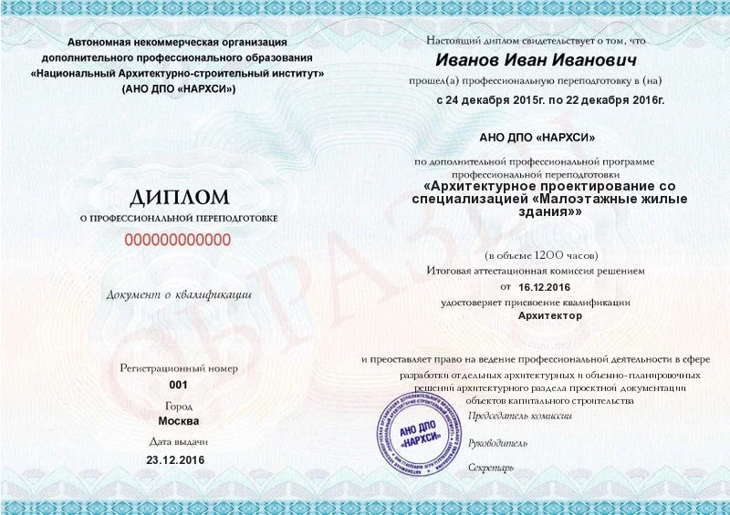 В наших документах об образовании не указывается формат, в котором проходило обучение архитектурному проектированию. Данные обо всех дипломах вносятся в «Федеральный реестр сведений о документах об образовании».